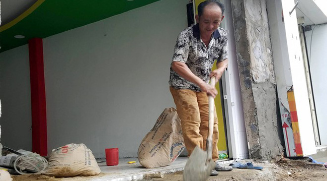 "Sau khi chủ nhà đồng ý, tranh thủ thời gian cuối tuần, tôi gọi thêm nhân công đập bỏ phần bê tông, bậc thềm lấn ra vỉa hè sai quy định", chủ cửa hiệu này cho biết.