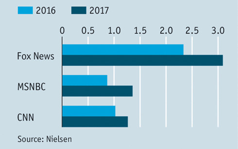 Lượng người xem của mỗi kênh tin này tăng từ 40% trở lên trong vòng 6 tuần tính đến 12/2, trong đó Fox News là kênh có nhiều người xem nhất. Kênh tin này đạt trung bình 3,1 triệu người xem vào thời gian chính trong ngày 2/1 vừa qua. Chính quan điểm mềm mỏng hơn với ông Trump đã khiến Fox News thu hút được những người ủng hộ tân Tổng thống.