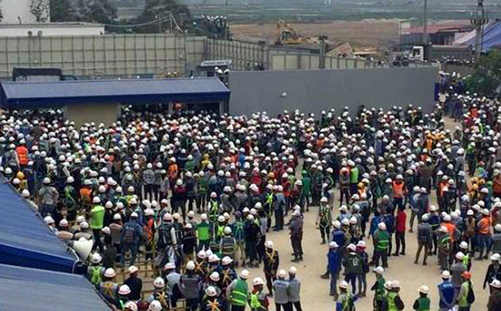 Theo hình ảnh trên mạng xã hội chiều thứ Ba 28 tháng 2, nhiều công nhân tụ tập tại khu vực kiểm soát ra vào công trường. Đám đông hành hung một người đàn ông nằm bất động.