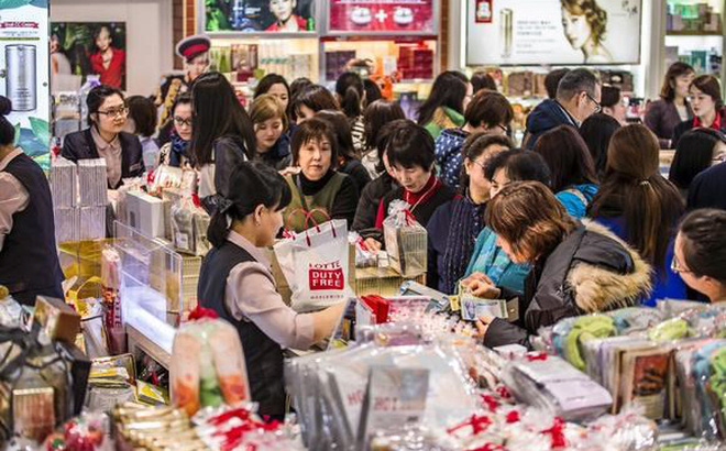 Khách hàng tại một cửa hàng miễn thuế của Lotte. (Nguồn: nikkei.com)