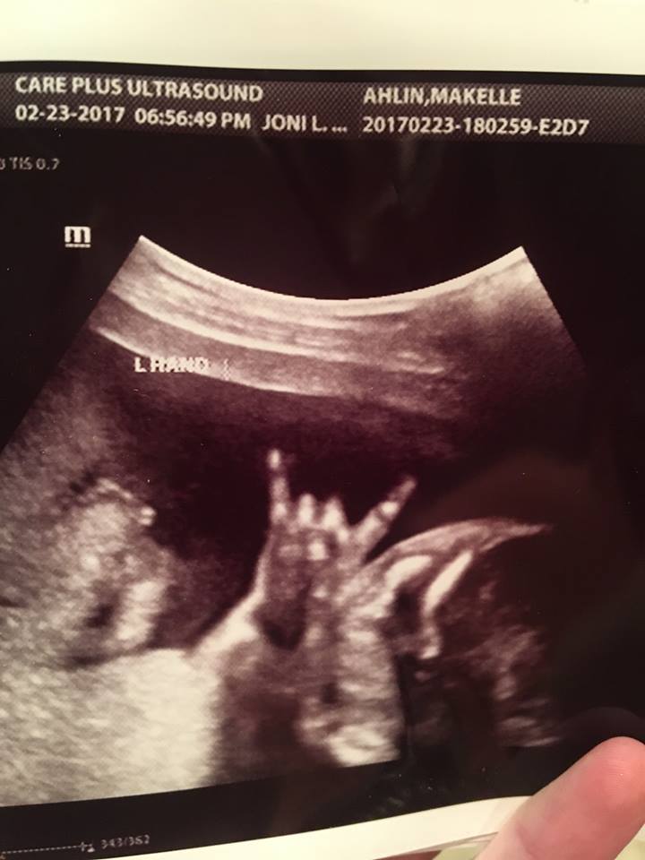 Một cặp vợ chồng Mỹ đã bị sốc khi nhìn thấy con của mình giơ tay kiểu “rock n roll” trong khi siêu âm.