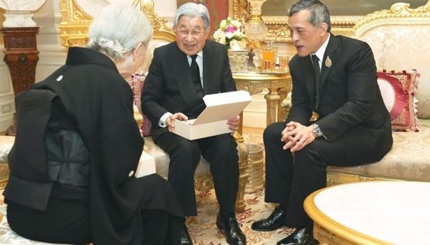 SCMP- Trong ngày 5/3 và 6/3 tại Bangkok, Nhật hoàng Akihito và hoàng hậu Michiko đã đến viếng cố Quốc vương Bhumibol Adulyadej vừa qua đời để bày tỏ sự tôn kính và gặp gỡ Tân Vương Maha Vajiralongkorn, người vừa lên ngôi vào tháng 12/2016.