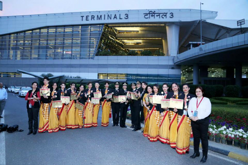 Phi hành đoàn chụp ảnh kỷ niệm tại sân bay New Delhi. Ảnh: Air India.