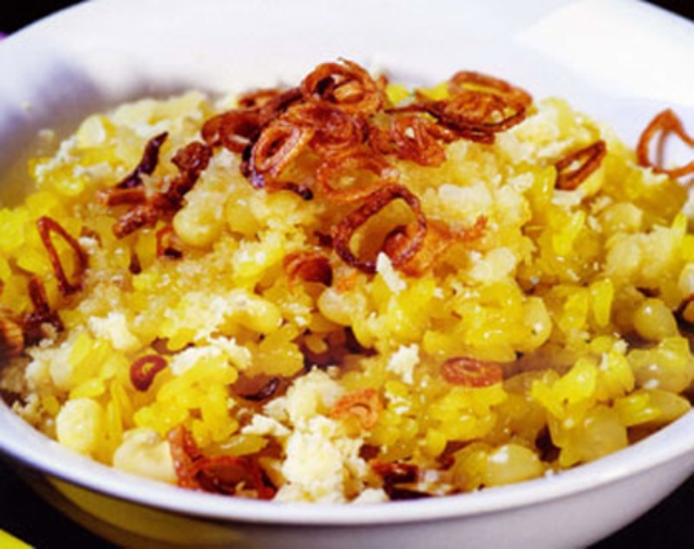 Lấy xôi ra bát, rắc chút hành phi lên trên là bạn có thể thưởng thức rồi.