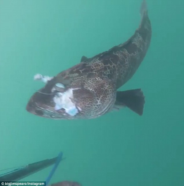 Anh quay video mình bắt được con cá và đăng tải trên Instagram thứ 6 tuần trước. Đoạn video cho thấy người đàn ông Mỹ bơi qua vùng nước sâu, phát hiện con cá mú bông trốn giữa các tảng đá.