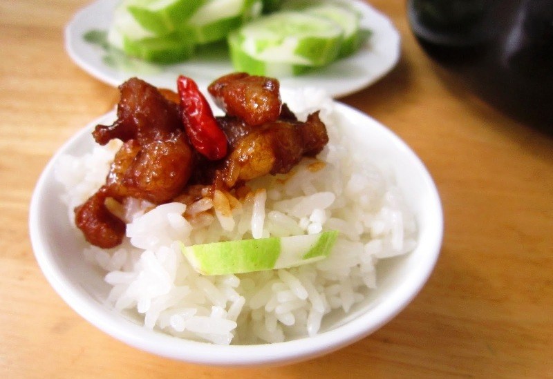 ách thực hiện cũng hết sức đơn giản: Chuẩn bị 0,5 - 0,7g lá trà, ngâm vào 1kg nước sôi từ 5 - 8 phút, dùng vải thưa lọc hết bã, đổ nước trà đã lọc sạch bã vào gạo đã vo sạch và nấu như bình thường, đợi đến khi cơm chín là được.