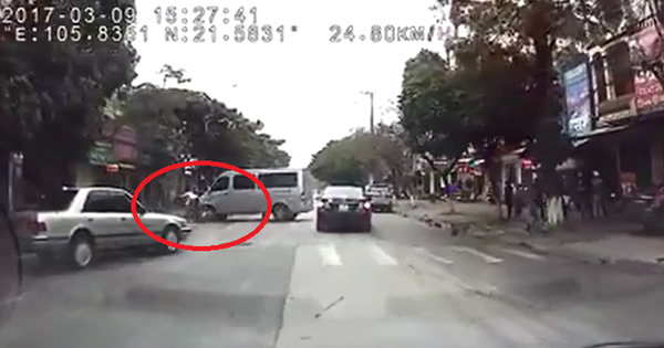 Khi ô tô chạy cùng chiều quay đầu xe thì chàng trai này không kịp xử lý tình huống nên đã bị xe này tông trúng, ngã ra đường. May mắn là chiếc ô tô 16 chỗ đang đi với tốc độ trung bình nên cú va chạm không quá mạnh và không gây ra hậu quả đáng tiếc.