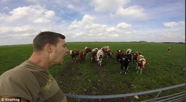 Old  Cool Video: Chàng trai ợ hơi, cả đàn bò tiến tới vì tưởng ... đồng loại