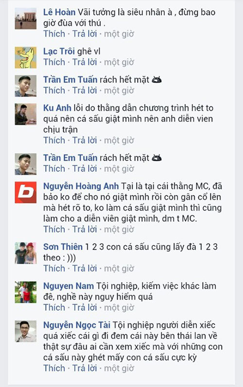 “Lỗi do thằng dẫn chương trình hét to quá nên cá sấu giật mình nên anh diễn viên chịu trận”, Nickname Ku Anh bình luận.
