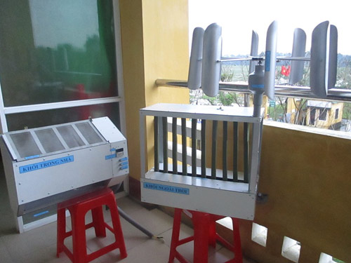 Mô hình máy làm mát không khí bằng năng lượng gió ở giai đoạn đầu. Ảnh: Nhật Tuấn.