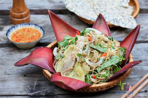 - Khi bắt đầu ăn thì cho bắp chuối, hành tây vào chung với thịt gà và trộn đều với ít chanh sao cho vừa miệng là được.