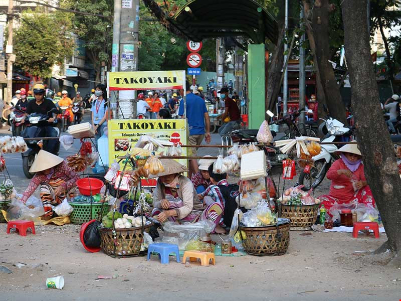Gánh hàng của chị Mười trên đường Nguyễn Hữu Cảnh khiến lũ nhỏ mê tít và hay khóc mỗi khi không thấy gánh hàng của chị để mua quà vặt. Ảnh: THANH TUYỀN