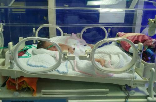 Bé sinh non bị bỏ rơi đang được chăm sóc đặc biệt