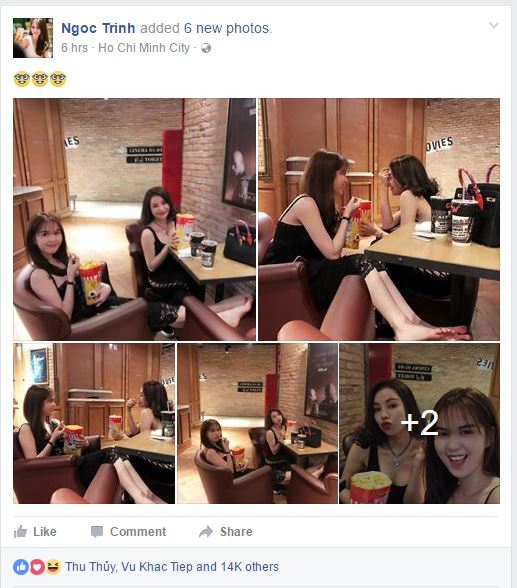 Hình ảnh đi xem phim được người đẹp Trà Vinh đăng tải lên facebook của mình