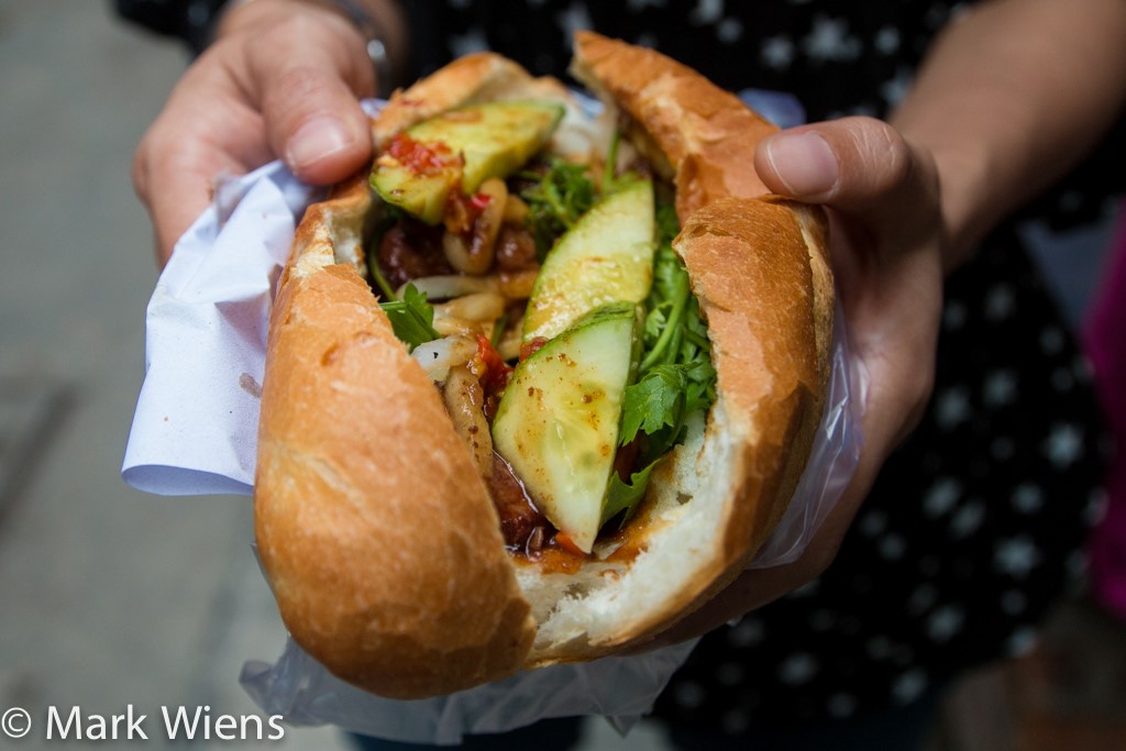 Bánh mì thịt nướng hẻm 37 Nguyễn Trãi (quận 1) từng được tạp chí nước ngoài bình chọn là món ăn vặt ngon nhất thế giới. Ảnh: Mark Wiens.