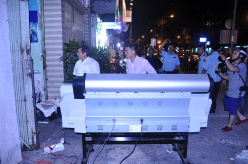 Một cơ sở Kinh doanh đặt máy in chiếm vỉa hè cũng bị lập biên bản xử lý.