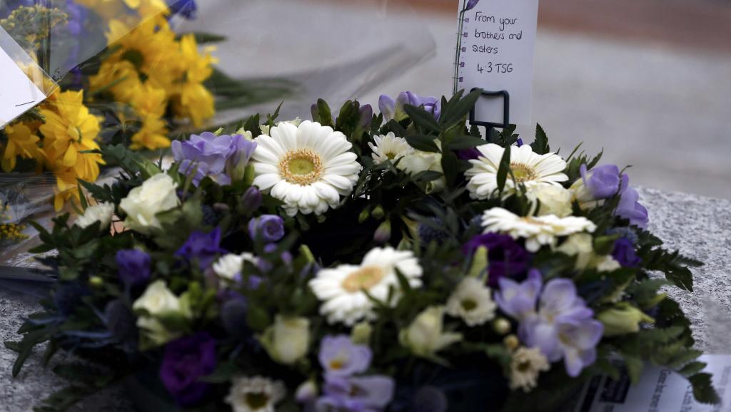 Hoa tưởng niệm nạn nhân trong vụ tấn công trên cầu Westminster được đặt trước New Scotland Yard, Luân Đôn, ngày 24/03/2017.