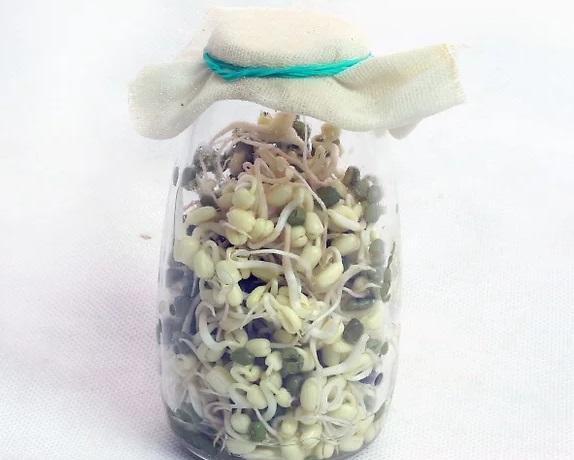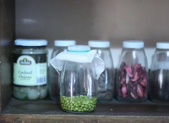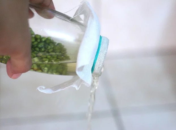 - Đặt lọ đỗ vào nơi ấm áp kín nắng. Rửa đỗ và lại đổ nước ra ngoài 2 lần mỗi ngày, điều này giữ cho đỗ được sạch sẽ và luôn đủ độ ẩm.