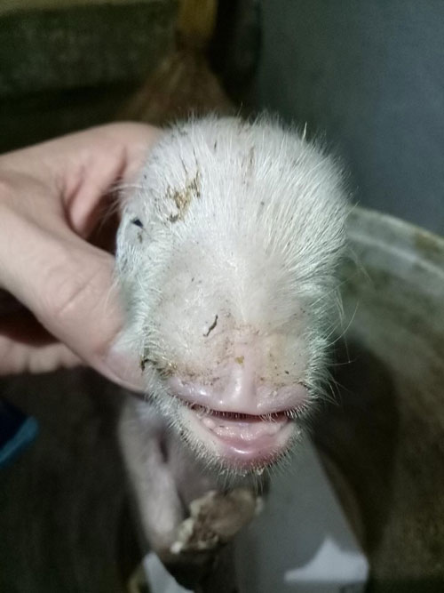 Vào khoảng 11h30 trưa (27/3), ông Trần Thế Lợi ở Làng Nùng, xã Đạo Đức, huyện Vi Xuyên, Hà Giang ra chuồng lợn nhà mình xem lợn nái mới đẻ thì phát hiện một chú lợn con đang rất yếu ớt. Khi nhấc con lợn này lên thì phát hiện lợn hình hài kỳ dị, con lợn có tay, chân na ná giống khỉ, đặc biệt mũi lợn lại nằm bên trong lớp da thừa.