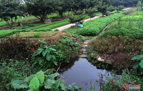 Dòng nước ô nhiễm nằm sát các luống rau màu
