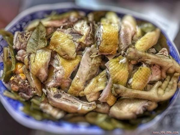 - Thịt gà hấp muối thơm mùi sả và lá chanh, thịt gà đậm đà, giữ nguyên được hương vị đặc trưng.