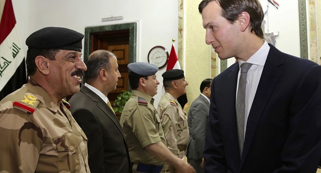 Vietbf.com - Con rể Trump, là Jared Kushner đã đến thăm Iraq, mà trong chuyến công du quan trọng này, Jared Kushner một mình đã đóng hai vai, ngoại trưởng và cố vấn an ninh quốc gia, đúng là quyền lực gần như bất khả xâm phạm của Kushner dựa trên mối quan hệ gia đình với ông Trump.
