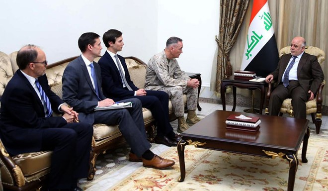 Cuộc gặp giữa phái đoàn Mỹ, bao gồm Tổng tham mưu trưởng, Tướng Joseph F. Dunford Jr., và Cố vấn Cấp cao của tổng thống Jared Kushner với Thủ tướng al-Abadi bàn về sự hợp tác trong cuộc chiến chống phiến quân IS. Đây là một trong những chủ đề trọng tâm mà Tổng thống Trump cam kết trong chiến dịch tranh cử.