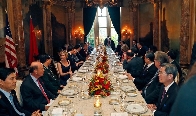 Trump có phong cách riêng khi tiếp khách ngoại giao bởi ông là người "có điều kiện" Tổng thống Donald Trump đã chọn phòng tiệc tại "Nhà Trắng Mùa đông" của mình mà ông cho rằng địa điểm thích hợp để tạo nên không khí sang trọng cho cuộc gặp lần đầu với Chủ tịch Trung Quốc Tập Cận Bình. Chúng ta cùng "dự tiệc" với Tổng thống Trump và Chủ tịch Tập: