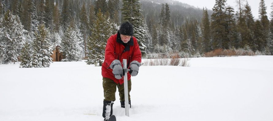 Những trận bão mùa đông to lớn đã mang tuyết đến phủ dầy dặc trên ngọn của dãy núi Sierra Nevada trong mùa đông năm nay. Chính lớp tuyết quý giá này khi tan chảy đã trờ thàng nguồn cung cấp nước cần thiết cho cả tiểu bang.