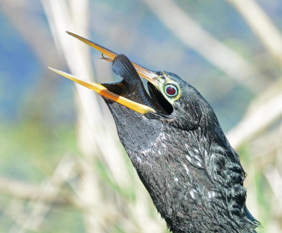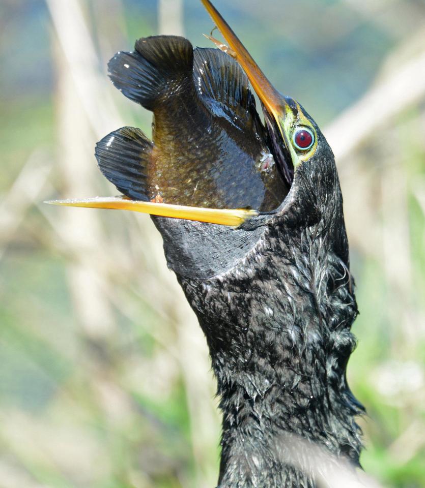 Con chim đói, được gọi chim cổ rắn đã nuốt một con cá gấp ba lần kích thước đầu của nó