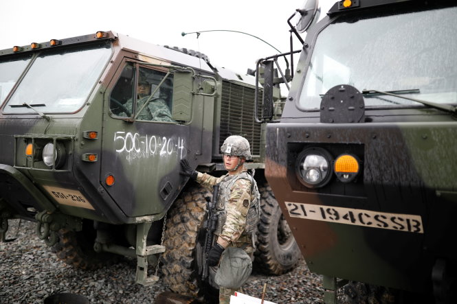Binh sĩ Mỹ đang tập trận tại Pohang (Hàn Quốc) ngày 11-4 - Ảnh: Reuters