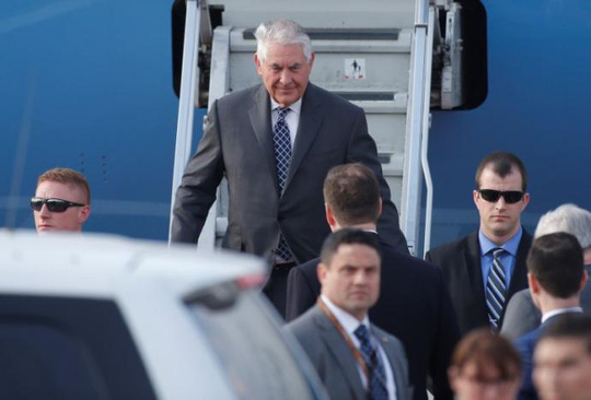 Ngoại trưởng Mỹ Rex Tillerson xuất hiện tại sân bay Vnukovo ở thủ đô Moscow - Nga hôm 11-4. Ảnh: REUTERS