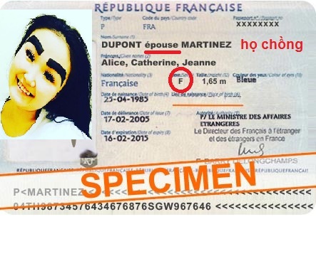 Nếu ly dị, phải xin phép chồng để giử họ ông, nếu không thì sửa thành họ bà trên giấy tờ. Bà vợ xài họ bà DUPONT (họ chánh) hay họ ông MARTINEZ (họ phụ) nếu có 2 họ trên giấy.