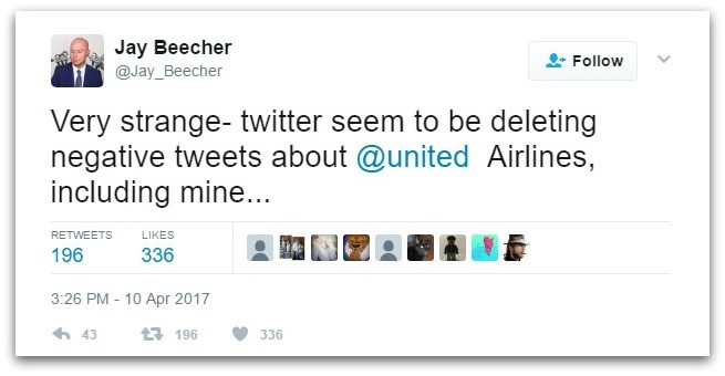 Đồng thời, nhiều người dùng Twitter đã chỉ ra rằng các bài viết chỉ trích United Airlines của họ đã bị xóa đi.