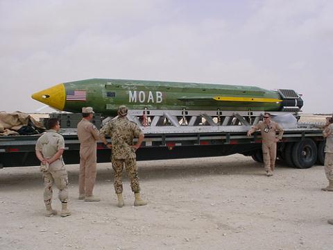 Quân đội Mỹ cho biết một máy bay vận tải MC-130 đã ném quả bom GBU-43/B xuống một tổ hợp đường hầm và hang động của IS ở huyện Achin thuộc tỉnh Nangarhar của Afghanistan vào khoảng 19h30 ngày 13/4 theo giờ địa phương. Người phát ngôn Không quân Mỹ, Đại tá Pat Ryder khẳng định đây là loại bom phi hạt nhân lớn nhất mà Mỹ từng sử dụng trong chiến đấu.