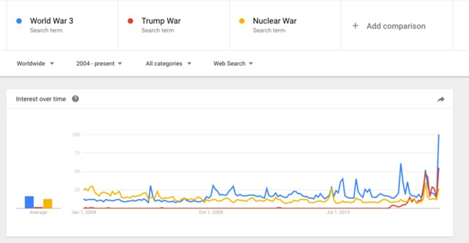 Theo báo cáo từ Google, người dùng bắt đầu tăng cường tìm kiếm các từ khóa liên quan đến chiến tranh ở thời điểm vài tuần sau khi Tổng thống Donald Trump trúng cử, sau đó là một vài động thái liên quan đến ngoại giao của ông này.