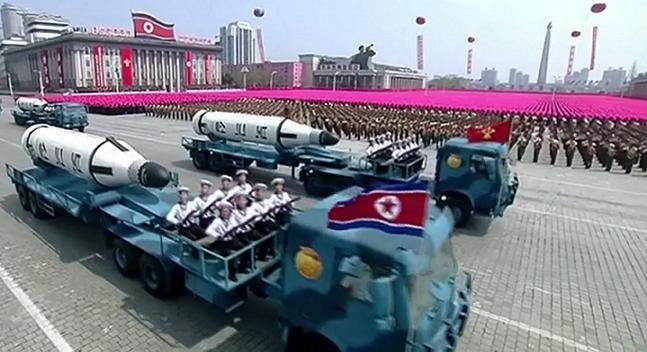Triều Tiên cũng trưng bày 2 loại tên lửa đạn đạo xuyên lục địa (ICBMs) mới trong cuộc diễu hành năm nay. Một quả tên lửa được gắn trên chiếc xe tải lớn do Trung Quốc sản xuất. Loại xe tải này hồi năm 2010 Bộ Lâm nghiệp Triều Tiên đã nói với Trung Quốc rằng được dùng để vận chuyển gỗ.