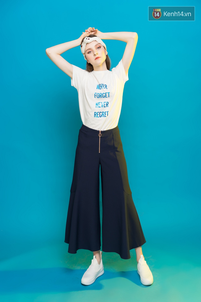 Quen thuộc nhưng lại chẳng bao giờ nhàm chán, combo áo phông trắng và quần culottes luôn là công thức bạn có thể tin tưởng, đặc biệt là trong những ngày "chẳng biết mặc gì".