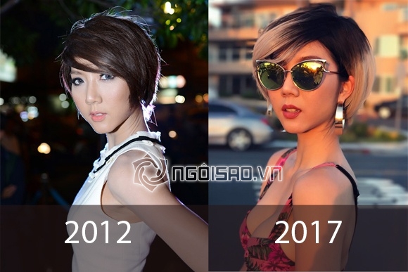 Cũng để tóc ngắn nhưng chỉ cần màu nhuộm khác là Ngọc Quyên đã trông hiện đại