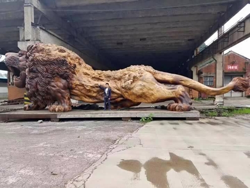 Được chia sẻ trên 1 fanpage có rất đông người tương tác, những hình ảnh về 1 con sư tử bằng gỗ nguyên khối khổng lồ nhanh chóng thu hút sự chú ý của cư dân mạng. Không chỉ khiến người khác trầm trồ về kích thước siêu lớn, giá trị của con sư tử này chắc chắn sẽ làm không ít người hoang mang.