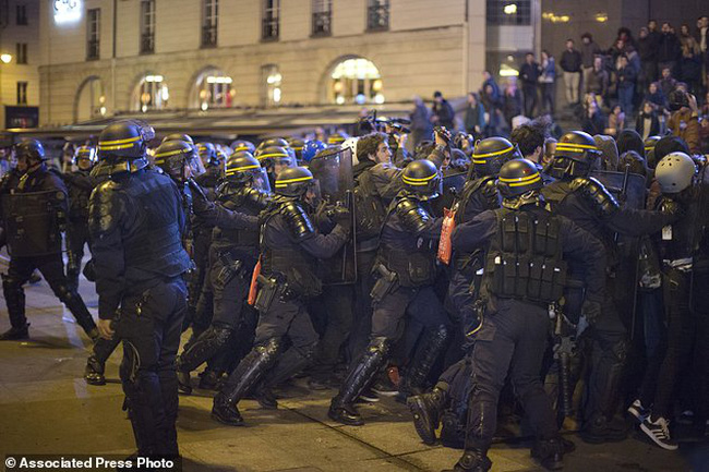 Sau kết quả vòng 1 bầu cử tổng thống Pháp, biểu tình đã nổ ra tại Pháp. Hàng trăm người đã đụng độ với cảnh sát ở Paris (Pháp) do cảm thấy tức giận trước việc bà Le Pen giành quyền bước vào cuộc bỏ phiếu vòng hai. Cảnh sát đã bắt giữ nhiều người quá khích sau khi xịt hơi cay để giải tán.