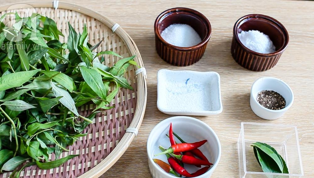 Cho rau răm, ớt, lá chanh, muối, đường, bột ngọt, tiêu vào máy xay.