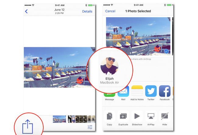 Cụ thể, nó sẽ giúp người dùng iPhone chuyển được dữ liệu cho máy iPhone khác bằng sóng Bluetooth và Wi-Fi. Người dùng có thể chuyển ảnh, video, đường dẫn trang web và thậm chí là ứng dụng trên iPhone. Để chuyển dữ liệu, chỉ cần nhấn vào một hoặc nhiều tập tin, chọn biểu tượng Share và nhấn vào AirDrop. Để nhận dữ liệu, hãy mở AirDrop ở Trung Tâm Điều Khiển bằng cách vuốt từ dưới màn hình lên.