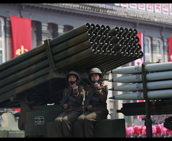 Tên lửa phóng loạt của Triều Tiên trong lễ duyệt binh 15.4.