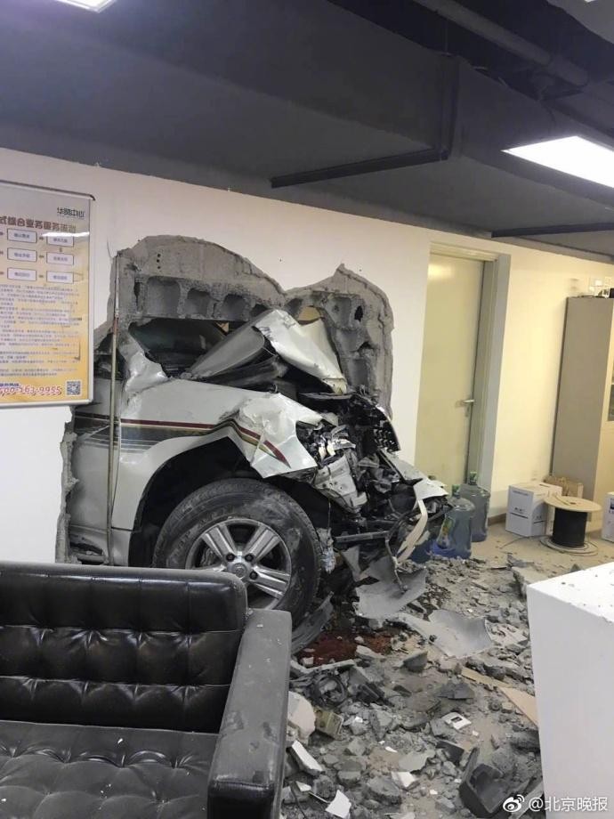 Vào khoảng hơn 17h ngày 26/4, tại tầng hầm B2 của trung tâm thương mại Hoa Mậu, ở Bắc Kinh, Trung Quốc đã xảy ra vụ tai nạn kinh hoàng khi xe ô tô đâm trúng một văn phòng làm việc, khiến cho 1 người chết và ít nhất 2 người khác bị thương.