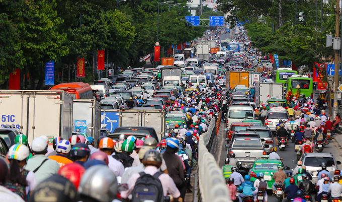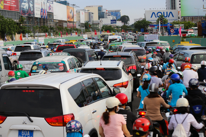 Tại Bến xe Miền Đông, khoảng 17h, xe cộ cũng ùn tắc nghiêm trọng từ cầu Sơn đến đường Nguyễn Xí và trên Quốc lộ 13. "Bữa nay, nhiều người dân cùng đổ về quê và đi du lịch nên đường tắc nghẽn vào giờ cao điểm. Xe máy phải nhúc nhích từng chút một", ông Nguyễn Tâm, tài xế xe ôm, nói.