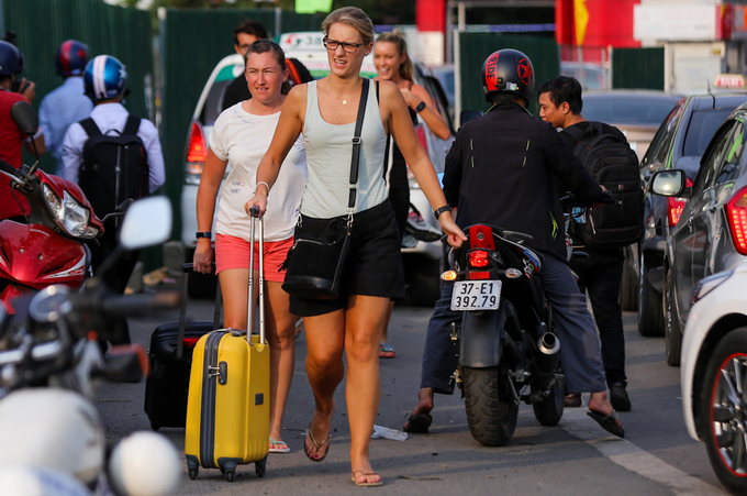 "Hành lý tôi nhiều, không thể đi bộ được nên thuê xe máy chở vào sân bay", anh Tài nói.
