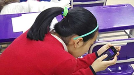 Cúi gập xem điện thoại gây hại đến đốt sống cổ (Ảnh minh họa).
