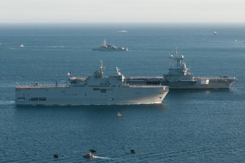 Tàu tấn công đổ bộ Mistral của Pháp trong một cuộc diễn tập.