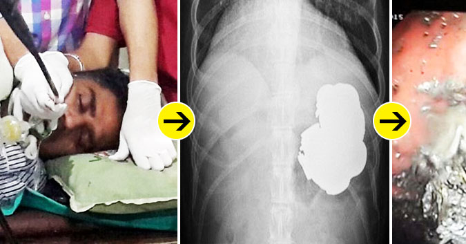 Thật không thể tin nổi trong dạ dày người đàn ông lại chứa nhiều vật chất lạ như vậy.Sau khi có dấu hiệu đau bụng dữ dội,người đàn ông mới đến bệnh viện để bác sĩ thăm khám.Cuối cùng anh cũng cho biết lý do khiến trong dạ dày của anh có nhiều vật lạ.